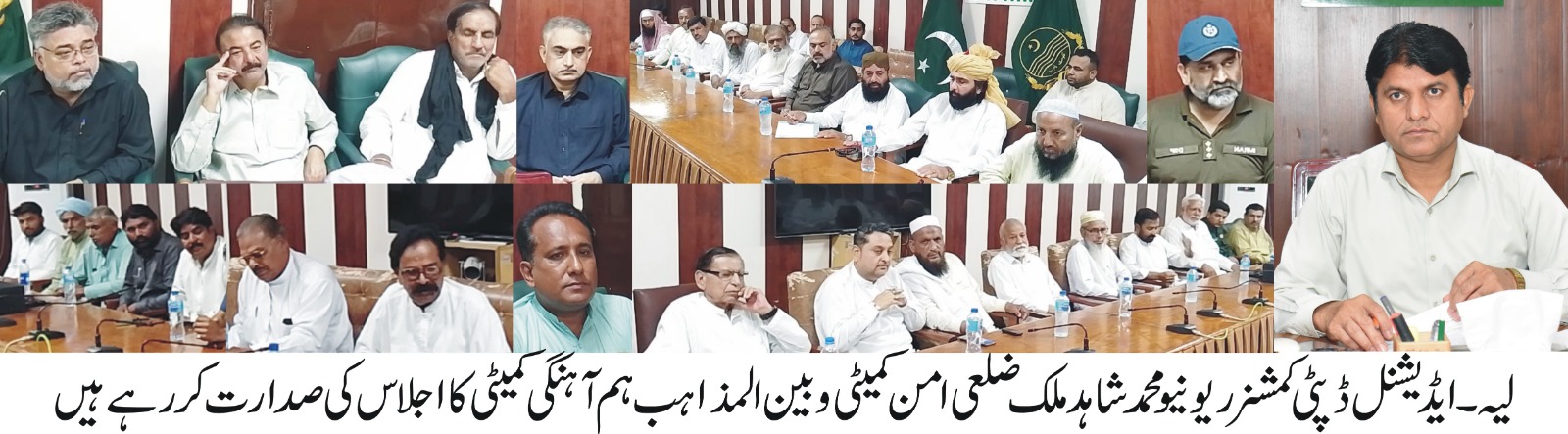لیہ24اگست (لیہ ٹی وی )ایڈیشنل ڈپٹی کمشنر ریونیو محمدشاہد ملک کی زیرصدارت چہلم امام حسین کے سلسلہ میں ضلعی امن کمیٹی و بین المذاہب ہم آہنگی کمیٹی کا اجلاس منعقدہوا۔اجلاس میںڈی ایس پی عمران خورشید،ایم ایس ڈی ایچ کیو ہسپتال ڈاکٹر راشد عباس،ممبران امن کمیٹی سید محمدغوث گیلانی،مخدوم علمدارحسین شاہ،محمود احمدعثمانی،ذوالفقارعلی،قاری فدالرحمان ،شیخ محمدکاشف،سجاد حسین زیدی،قاری محمدطارق،قاری محمداشرف،طلحہ زبیراحمد،اظہرہانس،قاری محمدرمضان،عبدالروف،شیخ مہتاب الہی،سیدمحمدثقلین،رانا اعجازسہیل،سید الطاف حسین شاہ،مہرمحمداقبال سمراءومتعلقہ افسران موجودتھے۔ایڈیشنل ڈپٹی کمشنر ریونیو محمدشاہد ملک نے اجلاس سے خطاب کرتے ہوئے کہاکہ سابقہ روایات کی طرح چہلم امام حسین پر ضلع کا مثالی امن ہر صورت برقرار رکھتے ہوئے پر امن انعقاد کے لئے بہترین انتظامات کئے جائیں گے۔انہوں نے کہاکہ کسی کو امن میں خلل ڈالنے کی اجازت نہیں دی جائے گی ممبران امن کمیٹی کا امن کے قیام میں مثالی کردار رہا ہے امن، محبت، مذہبی ہم آہنگی اور بھائی چارے کی فضاءکو مل کر پروان چڑھائیں گے۔ڈی ایس پی عمران خورشید نے کہاکہ ضلع پولیس اپنے فرائض مستعدی سے انجام دے رہی ہے چہلم امام حسین علیہ السلام کے لئے فول پروف سکیورٹی انتظامات کئے جائیں گے۔ ا نہوں نے کہاکہ شر پسند عناصر سے سختی سے نمٹا جائے گاسیکورٹی اور ٹریفک پلان پر عملدرآمد کو یقینی بنایا جائے گا۔ ممبران امن کمیٹی نے اظہار خیال کرتے ہوئے کہاکہ ہم مسلک نہیں امن کے داعی ہیں ملک، ضلع اور شہر کے امن کے لئے کسی قربانی سے دریغ نہیں کریں گے۔ اجلاس کے آخر میں ممبرامن کمیٹی مرحوم قاری کفایت اللہ ،رحیم یارخان میں شہداءپولیس اور ملکی و قومی سلامتی کے لئے دعاکی گئی