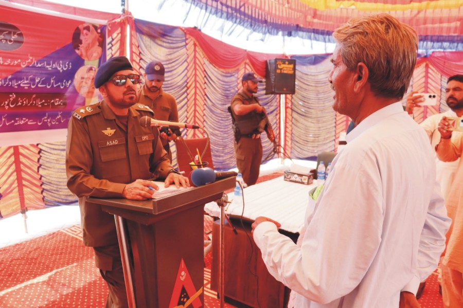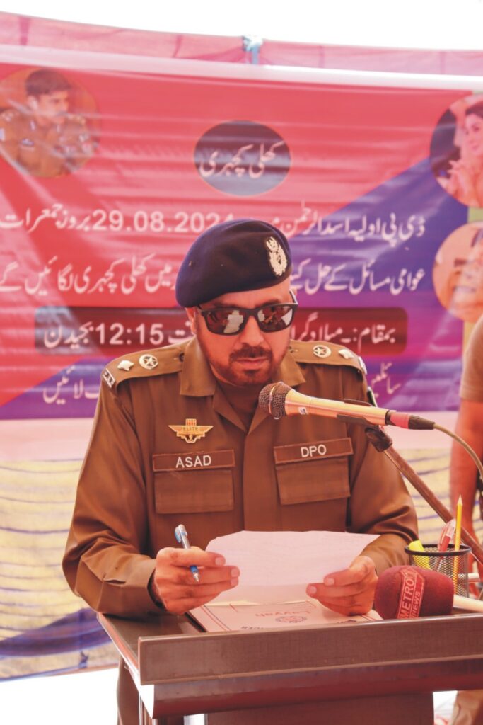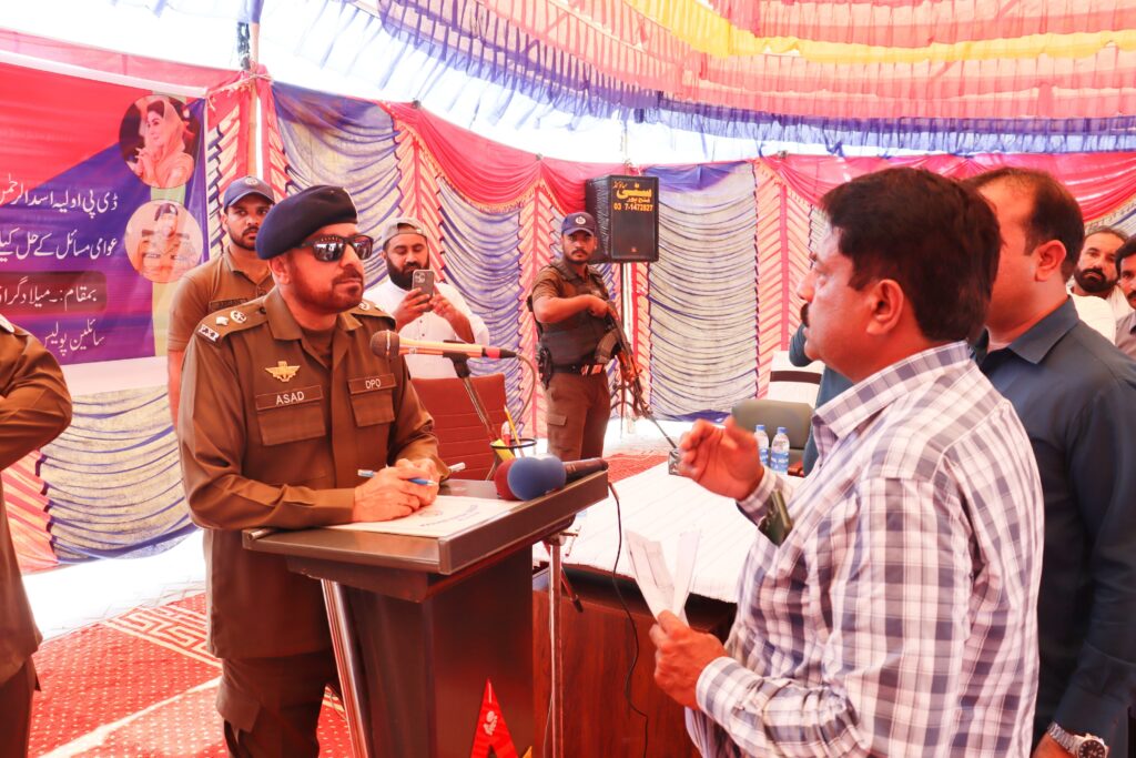 لیہ( لیہ ٹی وی) ڈی پی او لیہ اسد الرحمن شہریوں کے پولیس سے متعلقہ مسائل کے بروقت حل کےلئے متحرک ،ڈی پی او لیہ نے دومقامات پر کھلی کچہری کا انعقاد کیا،پہلی کھلی کچہری اڈا اللّٰہ یار جبکہ دوسری کھلی کچہری میلاد گراؤنڈ فتح پور
