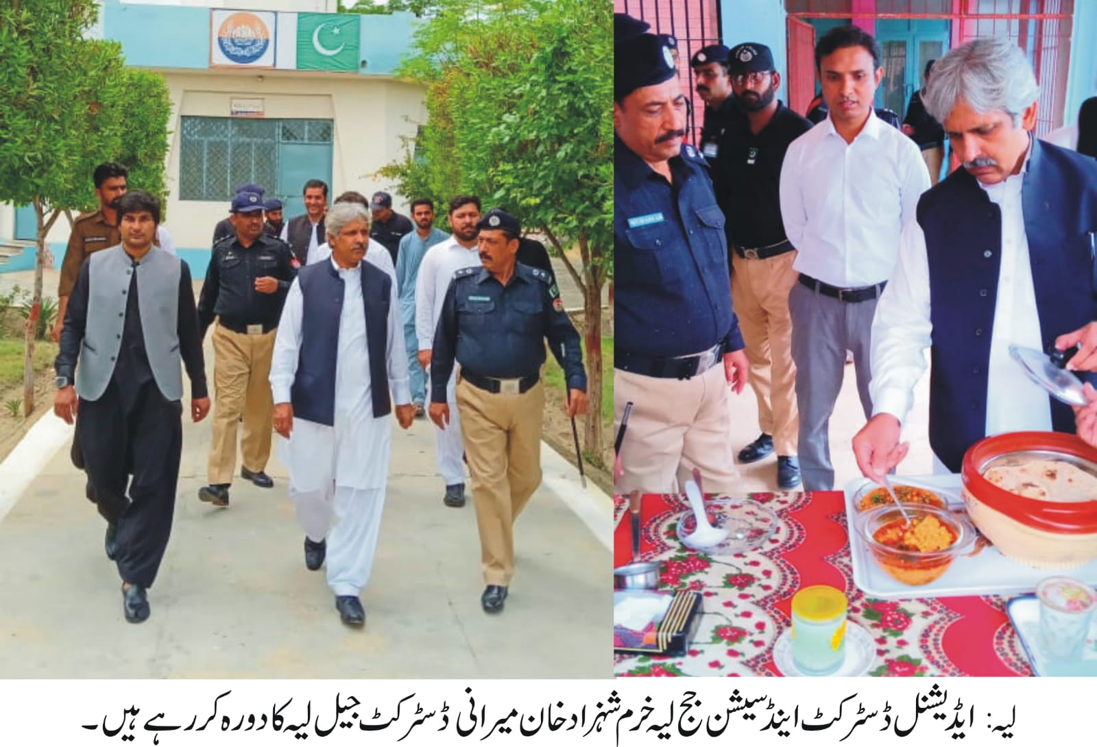 لیہ (نمائندہ لیہ ٹی وی )ایڈیشنل ڈسٹرکٹ اینڈ سیشن جج لیہ خرم شہزاد خان میرانی نے ڈسٹرکٹ جیل لیہ کا دورہ کیا ۔اس موقع پر سہیل افضل مجسٹریٹ درجہ اول ہمراہ تھے۔ججز نے اندرون جیل ہسپتال، کچن اسیران ، نو عمر وارڈمیں قائم سکول، بارکس ،صفائی و ستھرائی ،سکیورٹی کے انتظامات کا معائنہ کیا اور تمام انتظامات کو بہترین قرار دیا۔ججز نے معمولی جرائم میں ملوث ایک قیدی کی رہائی کے احکامات جاری کیے۔اس موقع سپرنٹنڈنٹ جیل محمدمدثر خان اور ڈپٹی سپرنٹنڈنٹ جیل عرفان علی چھینہ بھی موجود تھے۔