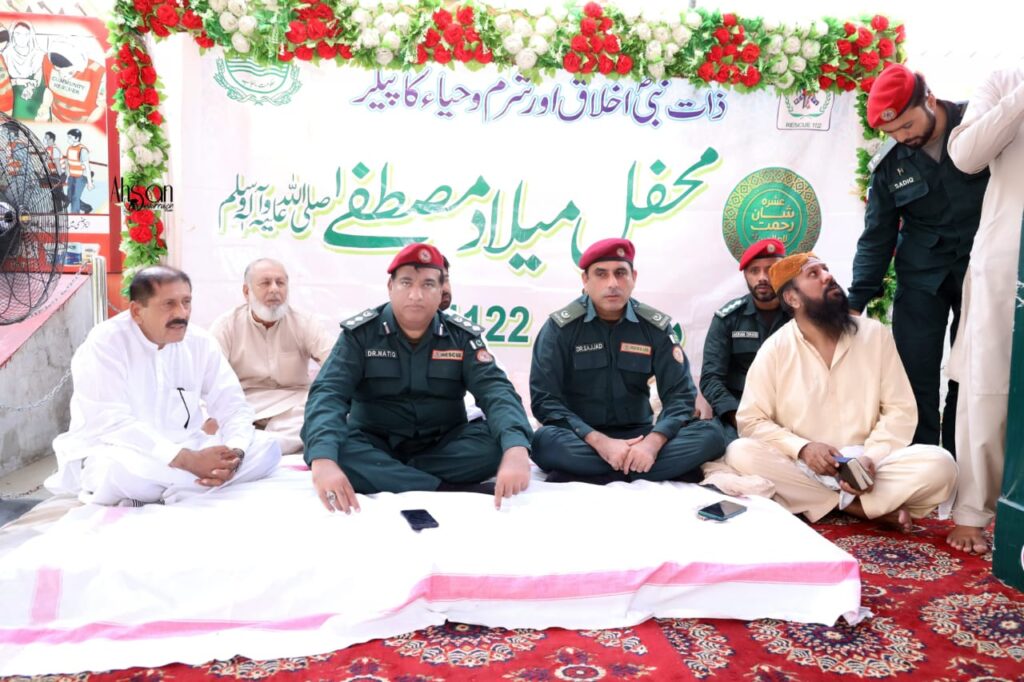 بعدازاں ڈسٹرکٹ ایمرجنسی آفیسر ڈاکٹر سجاد احمد ملک کے ہمراہ ریجنل ایمرجنسی آفیسر ڈاکٹر ناطق حیات غلزئی نےسینٹرل سٹیشن لیہ پرمنعقد ہونے والی سالانہ محفل میلاد النبی میں شرکت کی۔جس میں کثیر تعداد میں ریسکیورز اور ریسکیو سکاؤٹس نے شرکت کر کی. تمام شرکاء کیلئے وسیع پیمانے پر کھانے پینے کا انتظام کیا گیا.