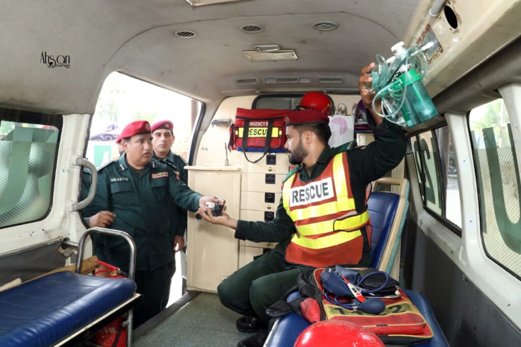 اور پھولوں کا گلدستہ پیش کیا۔ دورے کے دوران انہوں نے کنٹرول روم اور بلڈنگ کی صفائی و ستھرائی کا معائنہ کیا۔دورے کے دوران ڈسٹرکٹ ایمرجنسی آفیسر ڈاکٹر سجاد احمد ملک نے ضلع بھر میں کمیونٹی آگاہی پروگرام اور ریسکیو گرین مہم کی تیاری کے حوالے سے بریفنگ دی۔