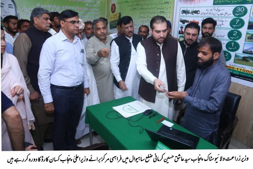 ملتان(لیہ ٹی وی )سید عاشق حسین کرمانی وزیر زراعت ، لائیو سٹاک وڈیری ڈویلپمنٹ پنجاب نے ساہیوال میں کسان کارڈفراہمی مرکز کا دورہ کیا۔ اس موقع پر ممبران صوبائی اسمبلی ملک قاسم، ملک ارشد اور پیر ولایت شاہ کھگہ، کمشنر ساہیوال ڈویژن شعیب اقبال سید، آر پی او ساہیوال محبوب رشید ڈپٹی کمشنر ساہیوال صائمہ علی، ڈسٹرکٹ پولیس آفیسر فیصل شہزاد ، ڈائریکٹر جنرل زراعت توسیع چوہدری عبدالحمید اور ڈائریکٹر جنرل زرعی اطلاعات پنجاب نوید عصمت کاہلوں بھی ان کے ہمراہ تھے۔ اپنے دورہ کے دوران صوبائی وزیر نے کسان کارڈ فراہمی سنٹر پر انتظامات کا جائزہ لیا۔ اس موقع پر صوبائی وزیر زراعت و لائیو سٹاک پنجاب نے کہا کہ وزیراعلیٰ پنجاب کسان کارڈ کے حصول کیلئے اب تک ساڑھے 8لاکھ کاشتکار رجسٹریشن کراچکے ہیں جبکہ اڑھائی لاکھ کسان کارڈز کی پرنٹنگ کے بعد فراہمی جاری ہے۔ انہوں نے کہا کہ 15اکتوبر تک 5 لاکھ کارڈز ڈلیور کردئیے جائیں گے۔ وزیراعلی پنجاب کسان کارڈ کی فراہمی کے لیے صوبہ میں تحصیل کی سطح پر 134 مراکز قائم کیے گئے ہیں۔ وزیر اعلیٰ پنجاب کسان کارڈ کی فراہمی کا سلسلہ 15اکتوبر تک جاری رہے گا۔ صوبائی وزیر زراعت نے واضح کیا کہ وزیر اعلیٰ پنجاب کسان کارڈ گندم کے زرعی مداخل کی خریداری کیلئے استعمال ہوگا۔ساہیوال ڈویژن میں 60 ہزار کاشتکار رجسٹریشن کراچکے ہیں اور ساہیوال ڈویژن میں 7 کسان کارڈ فراہمی مراکزقائم کئے گئے ہیں ۔کسان کارڈ ڈلیوری سنٹرز پر محکمہ زراعت کے عملہ کو کاشتکاروں کی رہنمائی کی ہدایات جاری کردی گئی ہیں۔ وزیر زراعت و لائیو سٹاک پنجاب سید عاشق حسین کرمانی نے مزید کہا کہ وزیر اعلی پنجاب زرعی ترقی کے لیے پرعزم ہیں۔ زرعی میکانائزیشن کو فروغ دینے کے لیے وزیراعلیٰ پنجاب گرین ٹریکٹر سکیم کے تحت 10لاکھ روپے فی ٹریکٹر سبسڈی دی جائے گی۔ اس کے علاوہ کاشتکاروں کو بین الاقوامی طرز کی سہولیات فراہم کرنے کے لیے ساہیوال سمیت بہاولپور،ملتان اور سرگودھا میں ماڈل ایگری مالز قائم کئے جارہے ہیں۔ انہوں نے کہا کہ ملکی تاریخ میں پہلی بار زرعی گریجوایٹس انٹرن شپ پروگرام متعارف کرایا گیا جس کے تحت انٹرنیز کو 60ہزار روپے ماہانہ وظیفہ دیا جائے گا۔16ستمبرسے نوجوان انٹرنیز فیلڈ میں عملی سرگرمیاں شروع کریں گے۔
