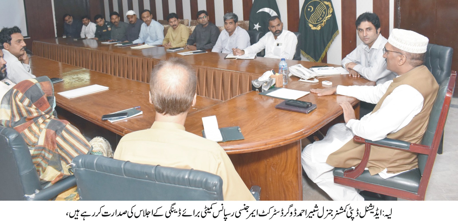 لیہ( نمائندہ لیہ ٹی وی ) ایڈیشنل ڈپٹی کمشنر جنرل شبیر احمد ڈوگر کی زیر صدارت ڈسٹرکٹ ایمرجنسی رسپانس کمیٹی برائے ڈینگی کا اجلاس منعقد ہوا ۔اے ڈی سی جی کا محکمہ سکول ایجوکیشن اور ماحولیات کے فوکل پرسنز کی اجلاس میں غیر موجودگی پر سخت نوٹس۔ اے ڈی سی جی نے متعلقہ فوکل پرسنز کو وضاحتی لیٹر جاری کرنے کی ہدایت کر دی۔ انہوں نے کہا کہ ڈینگی ایک خطرناک وائرس ہے اس کے سد باب میں کمی کوتاہی برداشت نہیں کی جائے گی۔