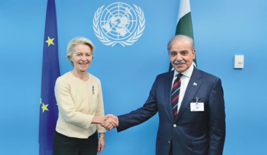 نیویارک(لیہ ٹی وی) وزیراعظم محمد شہباز شریف نے جمعرات کو اقوام متحدہ کی جنرل اسمبلی کے 79ویں اجلاس کے موقع پر یورپی کمیشن کی صدر ارسلا وان ڈیر لیین سے ملاقات کی۔ملاقات کے دوران دو طرفہ تعلقات اور علاقائی اور عالمی امور سمیت متعدد موضوعات زیر بحث آئے۔وزیراعظم نے محترمہ ارسلا کو یورپی کمیشن کا دوبارہ صدر منتخب ہونے پر مبارکباد دی اور یورپی یونین کے مفادات کو آگے بڑھانے کے لیے ان کے غیر متزلزل عزم کو سراہا۔وزیراعظم نے مشترکہ اہداف کو آگے بڑھانے میں مسلسل بات چیت اور تعاون کی اہمیت کو اجاگر کرتے ہوئے یورپی یونین کے ساتھ اپنے تعلقات کو مضبوط بنانے کے لیے پاکستان کے عزم پر زور دیا۔جی ایس پی پلس اسکیم پر تبصرہ کرتے ہوئے وزیراعظم نے کہا کہ پاکستان نے جی ایس پی پلس سے متعلق بین الاقوامی کنونشنز کو مکمل طور پر نافذ کرنے کے لیے مستقل سیاسی عزم کا مظاہرہ کیا ہے۔وزیر اعظم اور یورپی یونین کے صدر کے درمیان یہ تبادلہ باہمی مفادات کے امور پر عالمی سطح پر فعال روابط اور تعاون کے لیے پاکستان کے عزم کو واضح کرتا ہے۔