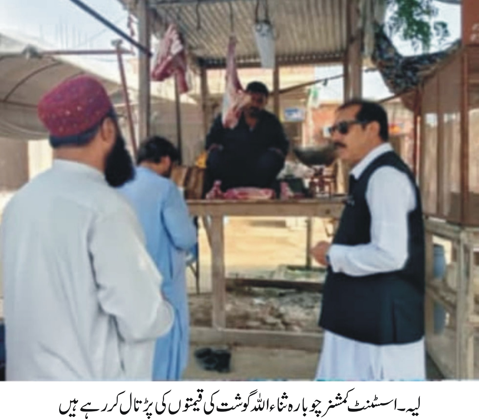 لیہ(نمائندہ لیہ ٹی وی )ڈپٹی کمشنر امیرا بیدار کی ہدایت پر اشیاء خوردونوش کی قیمتوں کو اعتدال پر رکھنے کے لئے پرائس کنٹرول مجسٹریٹس کی طرف سے مارکیٹوں کا معائنہ جاری ہے۔ اسسٹنٹ کمشنر چوبارہ ثناء اللہ ہنجرا نے ڈپٹی ڈائریکٹر لائیو سٹاک چوبارہ ڈاکٹر افراہیم کے ہمراہ قصاب مارکیٹ کا معائنہ کیا اور قیمتوں، صفائی کی پڑتال کی۔ اسسٹنٹ کمشنر نے ہدایت کی کہ گوشت کی دکانوں پر حفظان صحت کے مطابق جالیاں لگوائی جائیں تاکہ عوام کو آلودگی اور مکھیوں سے پاک گوشت ملے۔ انہوں نے کہا کہ ایس او پیز پر عملدرآمد نہ کرنے والے اور مہنگا گوشت فروخت کرنے والے قصابوں کے خلاف قانونی کارروائی ہوگی۔ اسسٹنٹ کمشنر نے اس موقع پر ماڈل ریڑھی بازار اور صفائی ستھرائی کے انتظامات کا بھی جائزہ لیا