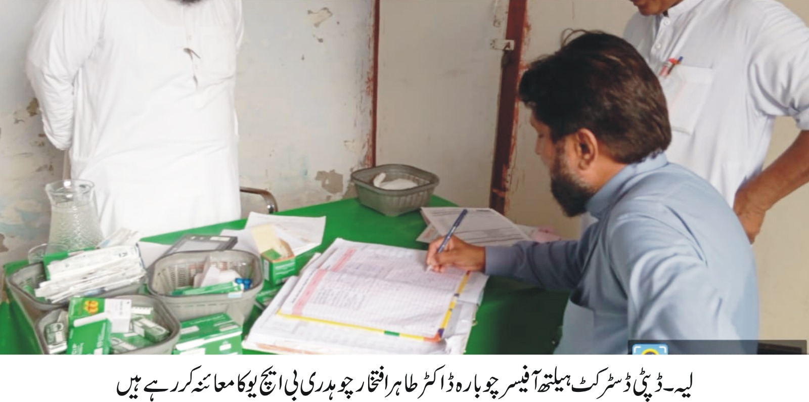 لیہ(نمائندہ لیہ ٹی وی)وزیراعلی پنجاب کی ہدایت پر عوام کو صحت کی بہترین سہولیات کی فراہمی کے سلسلہ میں دور درازدیہی علاقوں کے مراکزصحت کے اچانک معائنوں کا سلسلہ جاری ہے ۔ اس سلسلہ میں ڈپٹی ڈسٹرکٹ ہیلتھ آفیسر چوبارہ ڈاکٹرطاہر افتخارچوہدری نے بی ایچ یو 366ٹی ڈی اے رفیق آباد کا معائنہ کیا۔انہوں نے اس موقع پرصفائی ستھرائی ،ایم اوز اور دیگر سٹاف کی حاضری ،ادویات وعلاج کی دستیابی ،حفاظتی ٹیکہ جات کی آؤٹ ریچ سروسز ،لیبر روم کی فعالیت، فیملی پلاننگ اور او ٹی پی سروسز ودیگر امورکا جائزہ جس پر تمام طبی خدمات بہترین طریقہ سے انجام دی جارہی تھی ۔ ڈپٹی ڈسٹرکٹ ہیلتھ آفیسر چوبارہ ڈاکٹرطاہر افتخارچوہدری نے انچارچ ودیگر سٹاف کوشاباش دیتے ہوئے اسی طرح خدمات انجام دینے کی ہدایت کی۔