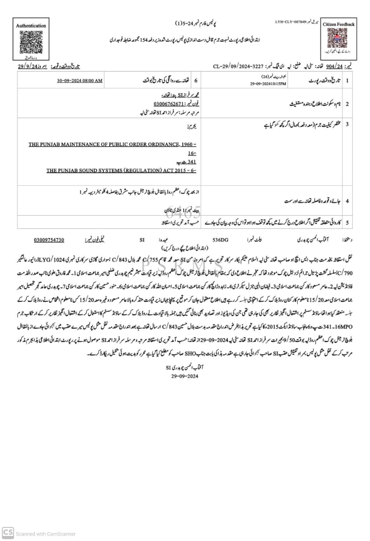 لیہ(نمائندہ لیہ ٹی وی) مہنگائی کے خلاف امیر ضلع جماعت اسلامی کے قیادت میں احتجاجی احتجاج کرنے پر تھانہ سٹی لیہ میں سات افراد کے خلاف نامزد 15 سے 20 افراد نا معلوم پر ایف ائی ار درج کر دی گئی تھانہ سٹی لیہ میں درج ایف ائی ار میں امیر ضلع مبشر نعیم چوہدری محمد فاروق علوی نائب صدر الخدمت فاؤنڈیشن عامر مسعود کارکن جماعت اسلامی فیضان الہی جنرل سیکرٹری زاہد وڑائچ کارکن جماعت اسلامی احسان اللہ کارکن جماعت اسلامی منور حسین کارکن جماعت اسلامی چوہری حامد گجر تحصیل امیر جماعت اسلامی اور 15 سے 20 نامعلوم افراد کے خلاف روڈ بلا کر کے احتجاجی جلسہ کرنے پر زیر دفعہ 16 ایم پی او 341 اور پنجاب ساؤنڈ ایکٹ 2015 کے خلاف ورزی پر مقدمہ درج کر کے قانونی کاروائی کا اغاز کر دیا