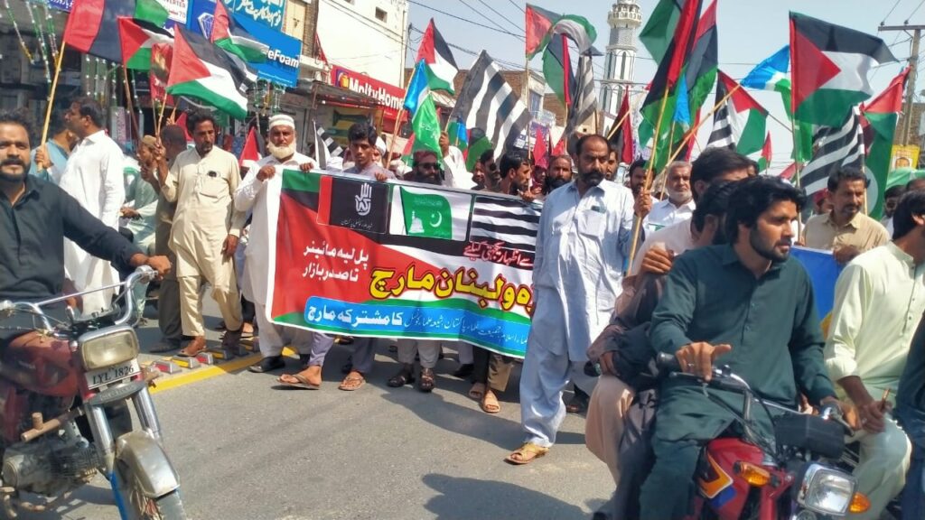 لیہ(نمائندہ لیہ ٹی وی) امیر جماعت اسلامی پاکستان حافظ نعیم الرحمن کی اپیل پر غزہ پر اسرائیلی جارحیت اور فلسطینی، لبنانی نوجوانوں کی لازوال قربانیوں کا ایک سال پورا ہونے پر ملک بھر کی طرح لیہ میں بھی سیاسی،دینی جماعتوں نے مارچ کیا