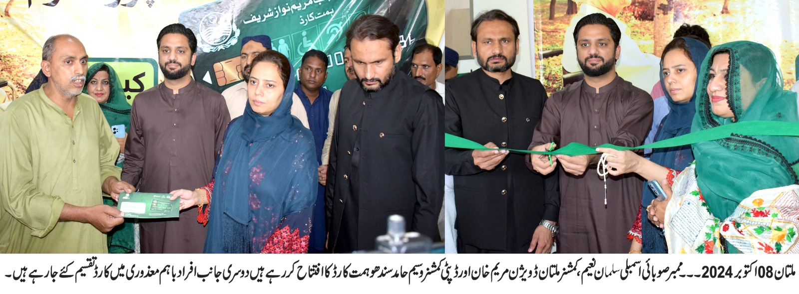 ملتان(لیہ ٹی وی)وزیراعلی پنجاب مریم نواز کی ہدایت پر پنجاب بھر میں باہمت افراد کیلئے ہمت کارڈ کا اجراء، ملتان میں ممبر صوبائ اسمبلی سلمان نعیم نے افتتاح کردیا۔ انہوں نے کہاکہ وزیر اعلی پنجاب مریم نواز نے افراد باہم افراد کی خودمختاری کو اپنی ذمہداری بنا لیا ہے۔ انہیں عوام کے مسائل کا ادراک ہے اور حل کیلئے عملی اقدامات کئے جارہے۔ہیں۔وزیر اعلی پنجاب مریم نواز ہر کمزور طبقہ کی آواز بن گئ ہیں۔افراد باہم معذوری کی سماجی و معاشی فلاح و بہبود کو یقینی بنانے کیلئے ہمت کارڈ کا اجراء کیا گیا۔ کمشنر مریم خان نے کہا کہ پہلے فیز میں ڈویژن میں 4628 افراد باہم معذوری کو ہمت کارڈ مہیا کیے جائیں گے۔ہر سہ ماہی افراد باہم معذوری 10500 روپے بذریعہ اے ٹی ایم حاصل کرسکیں گے۔ ڈی سی وسیم حامد سندھو نے کہا کہ محکمہ سوشل ویلفیئر سے معذوری سرٹیفکیٹ حاصل۔کرنے والے افراد کو کارڈ فراہم کیا جارہا ہے۔معذوری سرٹیفکیٹ کیمطابق کسی بھی کام کرنے کی اہلیت نا رکھنے والے افراد کو کارڈ فراہم کیا جائے گا۔ ڈائیریکٹر سوشل ویلفیئر ام فروا ہمدانی نے کہا کہ کسی بھی سرکاری، نجی یا دوسری سرکاری امداد نا لینے والے فرد کو ہمت کارڈ دیا جارہا ہے۔ تمام افراد کا بائیو میٹرک کروا کر کارڈ اور رقوم فراہم کی جارہی ہیں۔ تقریب میں افراد باہم معذوری میں کارڈز بھی تقسیم کئے گئے