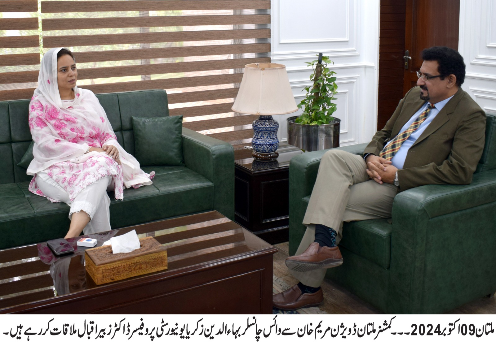 ملتان(لیہ ٹی وی) کمشنر ملتام ڈویژن مریم خان سے وائس چانسلر بہاوالدین زکریا یونیورسٹی ملتان ڈاکٹر زبیر اقبال نے ملاقات کی۔ملاقات میں باہمی دلچسپی کے امور پر تبادلہ خیال کیا گیا۔ کمشنر مریم خان نے کہا کہ شہر اولیاء کے طلباء و طالبات کیلئے بہترین ہائیر ایجوکیشن ناگزیر ہے۔ جدید ممالک میں درسگاہوں اور انتظامیہ کا گٹھ جوڑ مثبت پالیسی کی بنیاد ہوتا ہے۔ طلباء و طالبات کے فیلڈ کے تجربے کیلئے ڈویژنل انتظامیہ یونیورسٹی انتظامیہ کے شانہ بشانہ ہے۔ وائس چانسلر بہاوالدین زکریا یونیورسٹی نے کہا کہ شہر اولیاء کی سب سے بڑی درسگاہ کی انتظامی سیٹ پر تعیناتی اعزاز کا باعث ہے۔ بی زیڈ یو کو عالمی معیار کی درسگاہ بنانے کیلئے کوشاں ہیں۔یونیورسٹی کے معاشی استحکام کیلئے کڑے فیصلے ناگزیر ہیں۔ایڈیشنل کمشنر سرفراز احمد، ڈپٹی ڈائریکٹر ارم سلیمی موجود اس موقع پر موجود تھیں