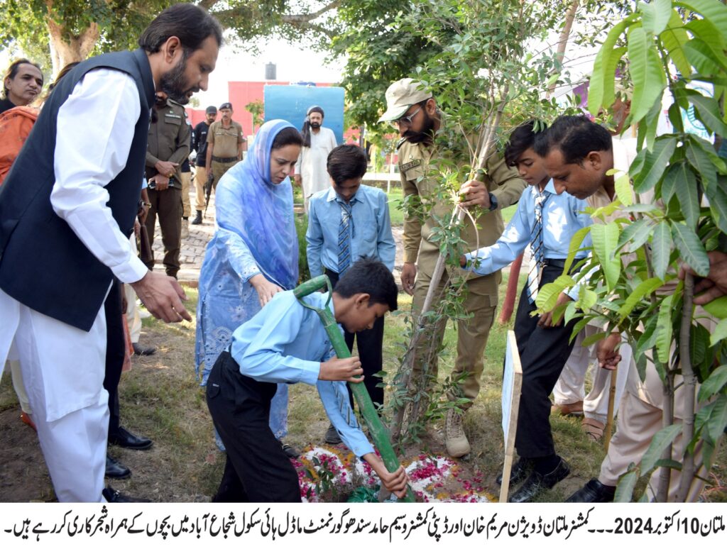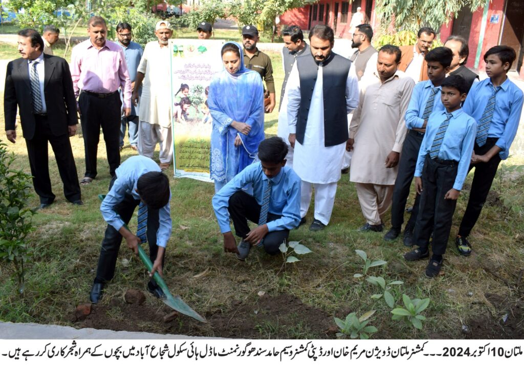 ملتان(لیہ ٹی وی)وزیر اعلی پنجاب مریم نواز کے پلانٹ اے ٹری فار پاکستان وژن کا سکولوں میں عملی نفاذ کردیا گیا۔ کمشنر ملتان ڈویژن مریم خان نے ڈپٹی کمشنر وسیم حامد سندھو کے ہمراہ گورنمنٹ بوائز ہائی سکول شجاع آباد میں طلباء کیساتھ شجرکاری کی۔