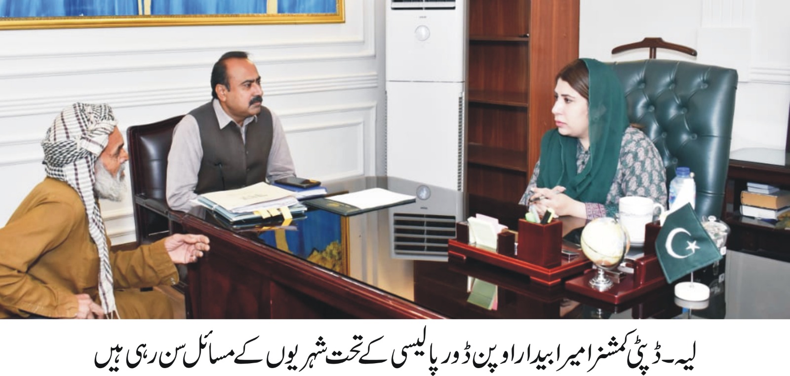 لیہ ( نمائندہ لیہ ٹی وی) حکومت پنجاب کے احکامات کی روشنی میں عوام کے مسائل کے فوری حل کے لئے پبلک آوور پروگرام پر عملدرآمد جاری ہے۔ ڈپٹی کمشنر امیرا بیدار نے اپنے دفتر میں شہریوں کے مسائل سنے اور ان کے حل کے لئے موقع پر احکامات جاری کئے۔ ڈپٹی کمشنر نے اس موقع پر کہا کہ تمام افسران پبلک آوور میں دفاتر میں موجود ہیں اور عوام اپنے مسائل کے حل کے لئے متعلقہ دفاتر سے رجوع کریں۔ انہوں نے کہا کہ وزیر اعلیٰ پنجاب مریم نواز شریف نے عوام کے مسائل کے فوری حل کے لئے واضح احکامات جاری کئے ہیں جن پر ضلع بھر میں عملدرآمد یقینی بنایا جا رہا ہے