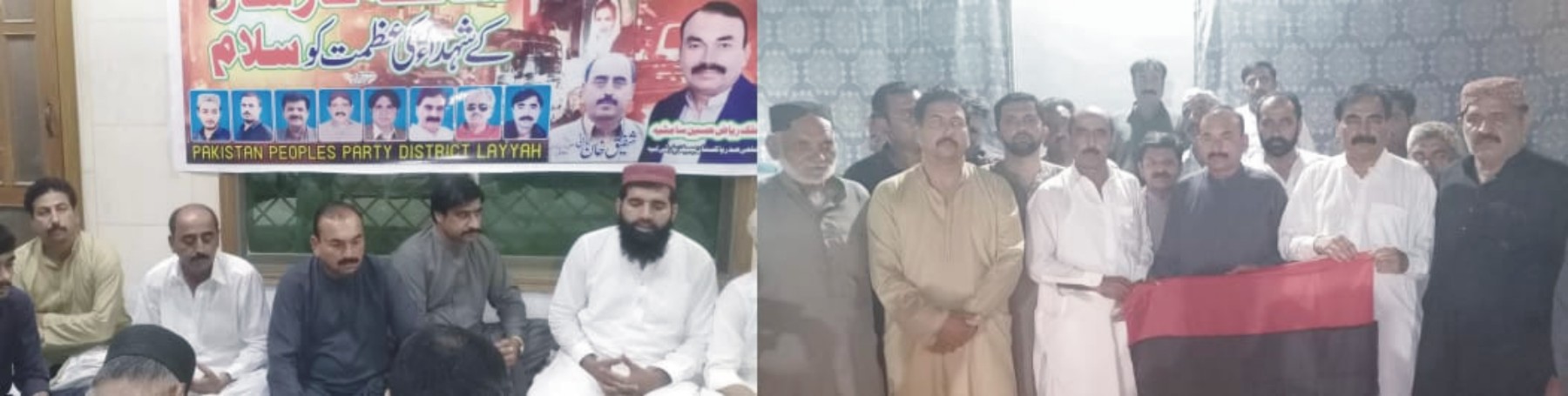لیہ( نمائندہ لیہ ٹی وی) پاکستان پیپلز پارٹی کے زیر اہتمام سانحہ کارساز کے شہداء کے لیے فاتحہ خوانی اور شمع روشن کی گئیں، پاکستان پیپلز پارٹی کے ضلعی دفتر نوشہرہ ہاؤس میں پارٹی رہنماؤں اور کارکنان نے بھرپور شرکت کی ضلعی صدرپاکستان پیپلز پارٹی ملک ریاض سامٹیہ ڈویژنل صدر قاضی احسان اللہ ایڈوکیٹ اور دیگر نے اپنے خطاب میں پیپلز پارٹی کے شہید کارکنان کی خدمات کو شاندار الفاظ میں خراج عقیدت پیش کرتے ہوئے کہا کہ پیپلز پارٹی وطن عزیز میں ائین قانون اور جمہوریت کی بالادستی کے لیے اپنے عزم و قربانیوں کا سفر جاری رکھے گی اور کسی قسم کے قربانی سے دریغ نہیں کرے گی اجلاس میں کارکنان کی کثیر تعداد نے شرکت کی۔