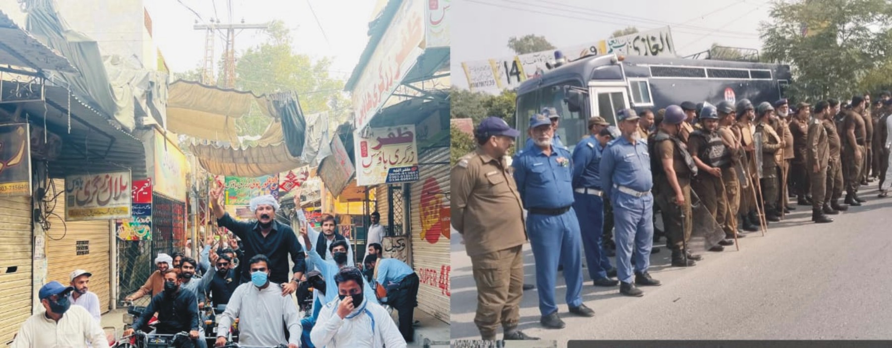 لیہ( نمائندہ لیہ ٹی وی) تحریک انصاف کے احتجاج کی کال لیہ پولیس ختم نبوت چوک لیہ میں پی ٹی ائی ورکرز رہنماؤں کا انتظار کرتی رہی چار ایم پی ایز کی قیادت میں چند کارکنان جنوبی بازار لیہ میں نمودار تفصیل کے مطابق گزشتہ روز تحریک انصاف لیہ نے مرکزی قیادت کی کال پر جنوبی بازار لیہ میں ایم پی ایز ملک شعیب امیر اعوان چوہدری اسامہ اصغر گجر چوہدری اطہر مقبول اور شہاب الدین خان سیہڑ کی سربراہی میں چند کارکنان نے عمران خان کے حق میں نعرے بازی کرتے ہوئے علامتی مارچ کیا اور پولیس کے انے سے قبل ادھر ادھر ہو گئے یہاں یہ بات یاد رہے کہ پی ٹی ائی کے ممکنہ احتجاج یا دفعہ 144 کی خلاف ورزی کی ممکنہ خلاف ورزی کے خلافقانونی کاروائی کرنے کے لیے ضلع پولیس لیہ کے درجنوں جوان ختم نبوت چوک میں سارا دن انتظار کرتے رہے