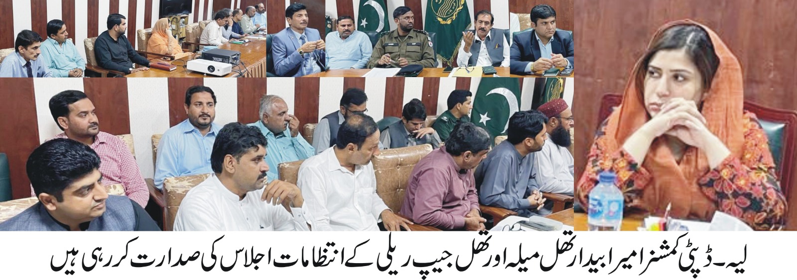 لیہ(نمائندہ لیہ ٹی وی)لیہ تھل میلہ میں عوام کی تفریح طبع کے لیے لائٹ/لیزرشوکے انعقاد کا فیصلہ۔میلہ میں عوام خصوصاً خواتین اوربچوں کے لیے ڈیزرٹ سفاری ٹریک پر چھوٹی گاڑیاں دوڑانے کے انتظامات بھی زیرغور لائے گئے۔اس بات فیصلہ ڈپٹی کمشنرامیرا بیدار کی زیرصدارت تھل جیپ ریلی اورلیہ تھل میلہ کے انتظامات کے جائزہ اجلاس میں کیاگیا۔ اجلاس میں اے ڈی سی آر محمدشاہدملک،اسسٹنٹ کمشنر چوبارہ ثنا اللہ ہنجرا،ڈپٹی ڈائریکٹرکالجز ذوالفقار حیدری،ڈپٹی ڈائریکٹرڈویلپمنٹ کامران جاوید،ڈی ایس پی ٹریفک راو عمر فاروق،ڈی او سپورٹس امتیاز احمدبھٹی،انچارج سیکورٹی برانچ اسماعیل احمد،ڈائریکٹرجی سی کیمپس رائے غلا م عباس بھٹی،ڈی ای او ڈاکٹرسجاداحمداور متعلقہ محکموں کے سربراہان موجودتھے۔ڈپٹی کمشنر نے ہدایت کی کہ لیہ تھل میلہ کے انتظامات کو جلداز جلد مکمل کیاجائے ۔انہوں نے کہاکہ لیہ تھل میلہ میں عوام کی تفریح طبع کے لیے لائٹ/لیزرشوکا بھی انتظام کیاجائے ۔ڈپٹی کمشنر نے ہدایت کی کہ لیہ چوبارہ روڈ پر خصوصاً میلہ کے ایام میں ٹریفک بہترین انتظامات کیے جائیں اور سڑک حادثات کو روکنے کے لیے ہیوی ٹریفک اور ٹریکٹرٹرالیوں کی بیک لائٹ کی تنصیب کو یقینی بنایاجائے اور مین شاہراہ پرغیر ضروری کٹس /یوٹرن ختم کردیے جائیں ۔اجلاس میں مختلف محکموں کی طرف سے تجاویزپر غور کیاگیااور ان کوجلد حتمی شکل دینے کا فیصلہ کیاگیا۔