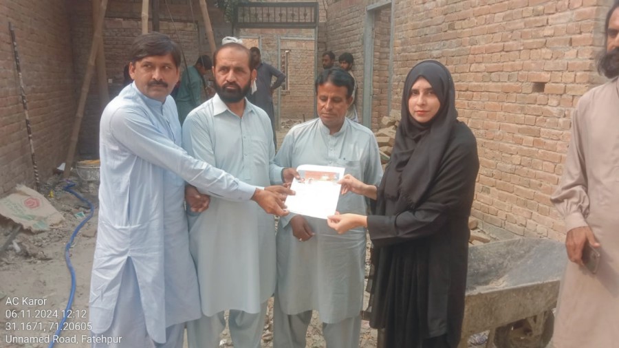 لیہ(نمائندہ لیہ ٹی وی) وزیراعلیٰ پنجاب مریم نواز شریف کے ویژن کے مطابق اپنا گھر اپنی چھت سکیم کے تحت کامیاب امیدواران میں سرٹیفیکیٹس کی تقسیم کا عمل جاری ہے۔ ڈپٹی کمشنر امیرا بیدار کی ہدایت پر خوشنصیب افرد کو سرٹیفکیٹ ان کے گھر پہنچائے جا رہے ہیں۔ اس سلسلہ میں اسسٹنٹ کمشنر کروڑ لعل عیسن انعم اکرم نے اپنا گھر اپنی چھت سکیم کے کامیاب اُمیدواروں کو ان کے گھر جا کر سرٹیفکیٹ دئے۔ سابق چیئرمین ضلع کونسل ملک عمر علی اولکھ ان کے ہمراہ تھے۔ اسسٹنٹ کمشنر نے بتایا کہ تمام کام میرٹ اور شفاف انداز میں مکمل کیا جا رہا ہے اور خوشنصیب افرد کو سرٹیفکیٹ ان کی دہلیز پر پہنچائے جا رہے ہیں۔