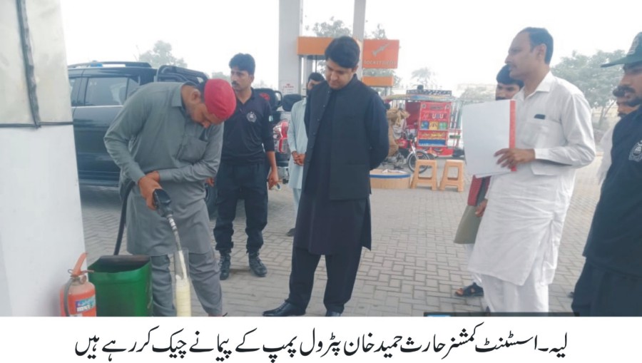 لیہ(لیہ ٹی وی)اسسٹنٹ کمشنرحارث حمیدخان نے شہرکے مختلف پٹرول پمپس کا معائنہ کیا۔ اس موقع پرسول ڈیفنس آفیسرمحمدتوقیر ہمراہ تھے۔اسسٹنٹ کمشنرحارث حمیدخان نے پٹرول پمپس کو چیک کیا اور پٹرول کے کم پیمانے پردو پمپ کو سیل کیا۔انہوں نے کہاکہ شہریوں کم پیمانے پرپٹرول دینا کسی صورت برداشت نہیں کیا جائے گی اس سلسلہ میں پٹرول پمپس کی چیکنگ کا عمل جاری ہے پٹرول کے پیمانہ جات میں کمی پر بلا تفریق کاروائیاں جاری ہیں کسی بھی پٹرول پمپ کوناپ تول میں کمی پیشی نہیں کرنے دی جائےگی جو بھی پٹرول پمپ خلاف ورزی کا مرتکب پایا گیا اس کے خلاف سخت قانونی کاروائی کی جائے گی۔