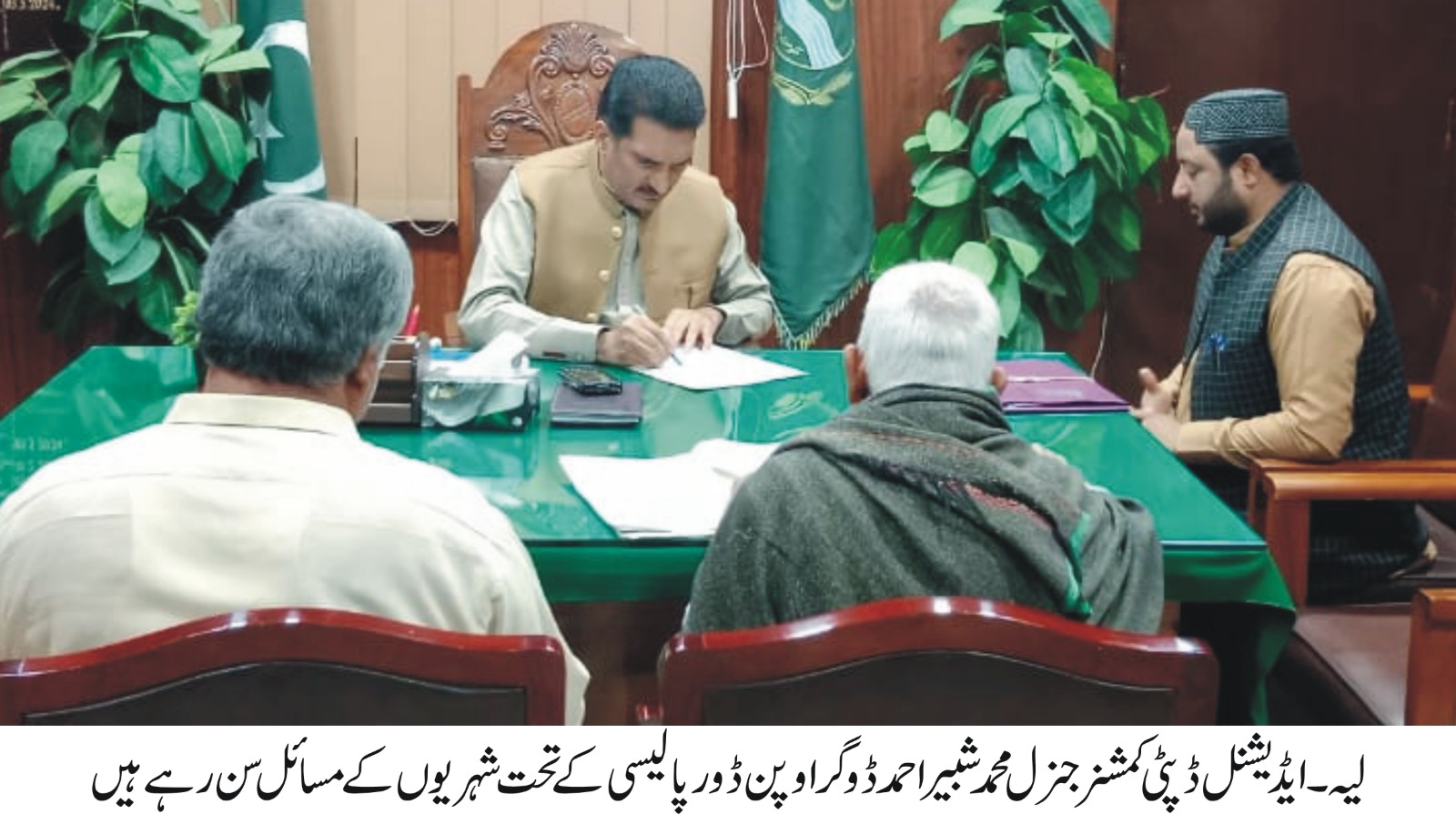 لیہ(نمائندہ لیہ ٹی وی)وزیراعلی پنجاب مریم نواز شریف کی ہدایت پرایڈیشنل ڈپٹی کمشنر جنرل محمدشبیراحمدڈوگرنے اوپن ڈور پالیسی کے تحت شہریوں کے مسائل سنے ۔انہو ںنے اس موقع پر کہاکہ شہریوں کے مختلف نوعیت کے مسائل سن کر ان کے حل کے لئے متعلقہ افسران کو موقع پر ہی ہدایات جاری کی جاتی ہیں کیونکہ عوامی مسائل کا تیز رفتار حل ضلعی انتظامیہ کی ترجیحات میں سرفہرست ہے۔انہوں نے کہاکہ ڈی سی آفس میں آنے والے بزرگوں، مردوخواتین کے شکایات ومسائل کے فوری حل کے لئے ضلعی انتظامیہ سرگرم ہے متعلقہ افسران شہریوں کی شکایات توجہ سے سنیں اور حل طلب امور کو فوری نمٹائیں ۔
