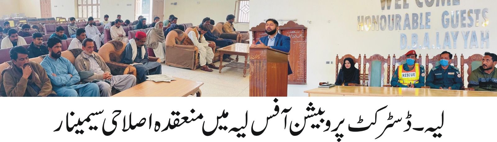 لیہ(نمائندہ لیہ ٹی وی)ڈسٹرکٹ پروبیشن آفس لیہ میں اصلاحی سیمینار کا انعقاد کیا گیا جس میں پروبیشن آفیسر رافعہ یاسین، معروف ماہر نفسیات ڈاکٹر تحسین اختر نے پروبیشنر سے ان کی زندگی کے معاملات پر گفتگو کی اور انہیں بہترین زندگی گزارنے کے اصول اور اپنی زندگی قانون کے مطابق بہتر طور پر گزارنے کے بارے میں آگاہی ۔ سیمینار میں ریسکیو 1122 کے ٹرینر عبدالجبار نے ایمرجنسی صورتحال میں ریسکیوکی بروقت مددکے بارے آگاہ کیا۔