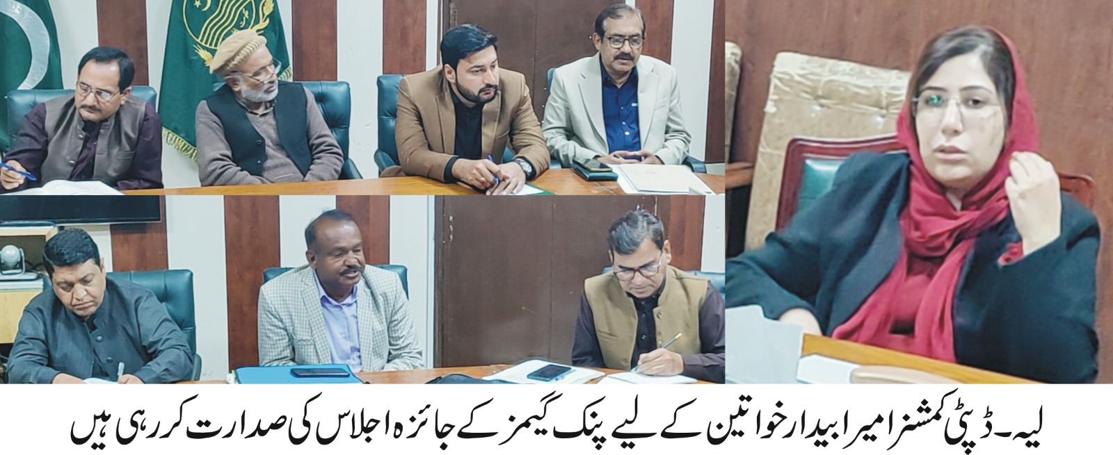 لیہ(نمائندہ لیہ ٹی وی)لیہ کی پہلی خاتون ڈپٹی کمشنرامیرا بیدار کا خواتین کے لیے پنک گیمز اور مینابازار کروانے کا فیصلہ۔لیہ کی تاریخ میں پہلی مرتبہ پنک گیمزکی تمام سرگرمیوں میں صرف خواتین شرکت کریں گی۔پنک گیمزمیں کھیلوں کے مقابلے ، ہمہ قسمی سٹالز،مشاعرہ ،موسیقی،تفریحی مقابلے،کوکنگ ودیگرسرگرمیاں کی جائیں گی۔تفصیل کے مطابق ڈپٹی کمشنرامیرابیدا ر کی زیرصدارت پنک گیمزکاجائزہ اجلاس منعقدہوا۔اجلاس میں اسسٹنٹ کمشنر چوبارہ ثنااللہ ہنجرا،ڈسٹرکٹ سپورٹس آفیسرامتیا زاحمدبھٹی،ڈپٹی ڈی ای او تعلیم ،ضلع کونسل حکام ودیگرموجودتھے۔ ڈپٹی کمشنرامیرا بیدارنے اجلاس سے خطاب کرتے ہوئے کہاکہ ضلع میںخواتین کو کھیل اور تفریحی سرگرمیاں دینے کے لیے سپورٹس کمپلیکس میں صرف خواتین کے لیے پنک گیمزمنعقدکروانے کا فیصلہ کیاگیا ہے جس میں میلہ جیساماحول بنایاجائے گااو ر مینابازار کا انعقاد کیاجائےگا۔ انہوں نے کہاکہ پنک گیمزمیں ہاکی،فٹ بال،والی بال،بیڈمنٹن کے مقابلے کروائے جائیں گے جس کے ساتھ خواتین کا محفل مشاعرہ،محفل موسیقی،کوکنگ مقابلوں کابھی اہتمام کیاجائے گا۔انہوںنے مزید کہاکہ صنعت زار،محکمہ صحت،ریسکیو کی خواتین اہلکار اپنے فیلڈسے متعلقہ آگاہی دیں گی۔انہون نے مزید کہاکہ دوسری تحصیلوں سے آنے والی بچیوں کو فری ٹرانسپورٹ کی سہولت بھی میسرآئے گا۔ڈپٹی کمشنر نے ڈی ایس او امتیاز احمدبھٹی کوپنک گیمزکے انتظامات کو حتمی شکل دینے کی ہدایت کی۔