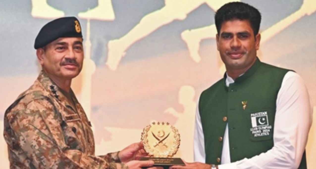 راولپنڈی:پاک فوج کے سربراہ جنرل سید عاصم منیر نے پاکستان کو 40 سال بعد اولمپکس میں گولڈ میڈل جتوانے والے ارشد ندیم کی کامیابی کو قومی فخر قرار دے دیا۔ آئی ایس پی آر کے مطابق آرمی چیف جنرل عاصم منیرکی جانب سے قومی ہیرو جیولین تھرور ارشد ندیم کے اعزاز میں جی ایچ کیو کےآڈیٹوریم میں تقریب منعقد کی گئی۔ جس میں میں 1984 کی اولمپک اور قومی ہاکی ٹیموں کے اولمپیئنز ، قومی کرکٹ ٹیم سمیت دیگرکھیلوں کی ٹیموں اور لیجنڈری اولمپیئنز، اسٹریٹ فٹبال ٹیم، آرمی پولو ٹیم، بصارت سے محروم کرکٹ ٹیم ، ویمنز گول بال ٹیم،کامن ویلتھ کے میڈل ونرز ، ایس اے ایف اور پیرس اولمپکس 2024 اور ایشن گیمز کے شرکاء بشمول قومی لیجنڈ جہانگیر خان، اصلاح الدین، شہباز سینئر، سہیل عباس، محمد آصف اور اعصام الحق نے بھی اس تقریب میں شرکت کی۔آرمی چیف نے پاکستان کے لیے گولڈ میڈل جیتنے اور نیا اولمپک ریکارڈ بنانے پر ارشد ندیم کو سراہا اور انہوں نے ارشد ندیم کی کامیابی کو قومی فخر قرار دیتے ہوئے کہا کہ ارشد ندیم نے اپنے عزم، استقامت اور بہترین کارکردگی کے جذبے کے باعث یہ تمغہ جیتا، پوری قوم نے ارشد کو ان کے کارنامے کے مطابق نوازا ہے۔آرمی چیف نےکھلاڑیوں کی مکمل سپورٹ اور انہیں با اختیار بنانے کے عزم کا اعادہ کیا۔ آرمی چیف نے خوشحال پاکستان کے مقصد کے حصول کے لیے نوجوانوں کی سپورٹ کے عزم کا بھی اعادہ کیا اور محنت اور عزم کی اہمیت پر زور دیا۔ ارشد ندیم نے آرمی چیف جنرل عاصم منیر کا شکریہ ادا کیا اور چیلنج پر قابو پانے اور کامیابی حاصل کرنے میں محنت اور ثابت قدمی کی اہمیت پر زور دیا۔