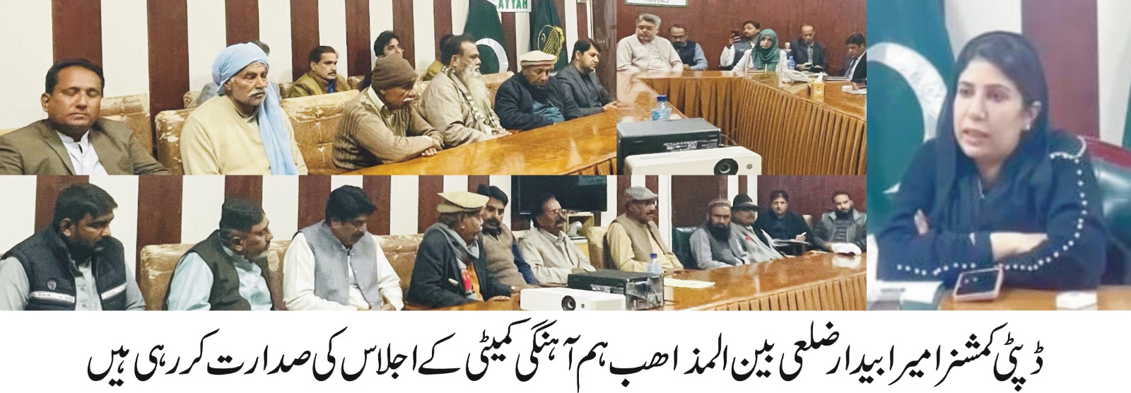 لیہ(نمائندہ لیہ ٹی وی)ڈپٹی کمشنر امیرابیدار کی زیرصدارت ضلعی بین المذاھب ہم آہنگی کمیٹی کا اجلاس منعقدہوا۔ اجلاس میںایڈیشنل ڈپٹی کمشنر ریونیومحمدشاہدملک ،اسسٹنٹ کمشنر حارث حمید خان،اسسٹنٹ کمشنر انعم اکرم،اسسٹنٹ کمشنرچوبارہ ثنااللہ ہنجرا،ڈپٹی ڈائریکٹرڈویلپمنٹ کامران جاوید،سی او ایم سی فتح پورنویدسلیمی ،ممبران کمیٹی انجم بھٹی، ملک محمدمقسوم،ناظہرسہوہن،سلیم سہو،مہرمجید،بختورام،عباس ریاض،مرزا رام،عبدالروف،رانااعجازسہیل،سیدالطاف حسین شاہ،سیدثقلین زیدی ،متعلقہ محکموں کے افسران موجودتھے۔ڈپٹی کمشنر امیرابیدارنے اجلاس سے خطاب کرتے ہوئے کہاکہ مسیحی برادری پاکستان کی لازمی اکائی ہے کرسچن کمیونٹی کو کرسمس کی مبارک باد پیش کرتے ہیںکرسمس کے موقع پر فول پروف سکیورٹی مہیا کی جائے گی۔ انہو ں نے کہاکہ اسلام امن و آشتی کا درس دیتا ہے اقلیتی برادری کو مذہبی عبادت اور تہواروں میں مکمل آزادی ہے کرسمس کے موقع پر بہترین انتظامات کئے جائیں گے کرسمس کے سلسلہ میں مسیحی برادری کو خریداری کے لئے کرسمس بازار قائم کر کے دیں گے جس میں سستی اور معیاری اشیاءکی فراہمی کو یقینی بنایا جائے گا۔اس موقع پرممبران نے کرسمس کے حوالے سے اپنی رائے کا اظہاربھی کیا۔
