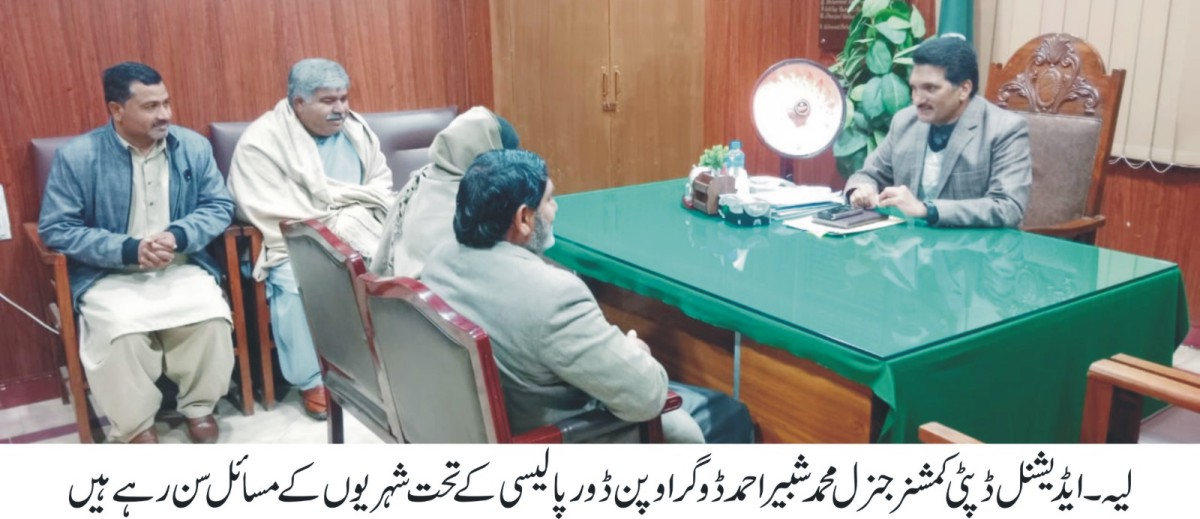 لیہ(نمائندہ لیہ ٹی وی)ایڈیشنل ڈپٹی کمشنر جنرل محمد شبیر احمد نے کہا کہ وزیراعلیٰ پنجاب مریم نواز شریف کی ہدایت پر اوپن ڈور پالیسی پر عمل درآمد جاری ہے، جس کے تحت بلاامتیاز شہریوں کے مسائل سن کر فوری حل کیا جا رہا ہے۔ انہوں نے کہا کہ شہریوں کو سرکاری محکموں سے شکایات کے حل کے لئے فوری اقدامات اُٹھائے جا رہے ہیں اور ان کی ریلیف کی فراہمی اولین ترجیح ہے۔ شہری بلا جھجھک اپنے مسائل حل کروانے کے لیے دفتر آ سکتے ہیں۔