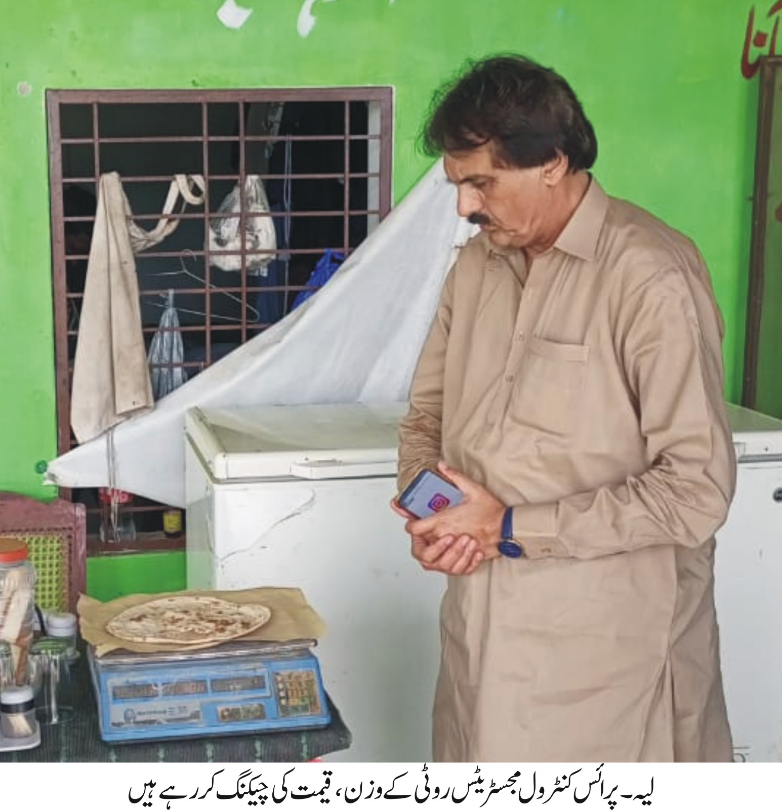 لیہ : حکومت پنجاب کی ہدایت پر ضلع لیہ میں روٹی اور نان کی سرکاری نرخوں پر فروخت کو یقینی بنانے کے لیے پرائس کنٹرول مجسٹریٹس ہوٹلوں ،نان شاپ کا معائنہ کررہے ہیں۔ہوٹلوں اورنان شاپ کے معائنہ کے دوران طے کردہ ریٹ سے ہٹ فروخت کرنے کی شکایات پرکارروائی کی جارہی ہے ۔ڈپٹی کمشنر امیرا بیدار نے پرائس کنٹرول مجسٹریٹس کو ہدایت کرتے ہوئے کہاکہ سو گرام روٹی کی قیمت 12 روپے جبکہ 120گرام نان کی مقرر قیمت 16 روپے قیمت فروخت مقررہے اس سلسلہ میں چیکنگ کی جائے خلاف ورزی پر بلاامتیاز کاروائی عمل میں لائی جائے خودساختہ مہنگائی قطعاً برداشت نہیں کی جائے گی