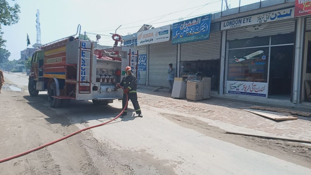 لیہ21اگست (لیہ ٹی وی) ریسکیو 1122متحرک ،آگ پر کنٹرول پالیا ،گنجان آبادی ومارکیٹ میں موجود دکانیں تباہی سے بچ گئں ،لیہ شہر کے درمیاں سے گذرنے والی لیہ مائینر کے ساتھ ہوٹل میں گیس سلنڈر لیک ہونے سے اگ لگ گئی ہے اطلاع پر ریسکیو 1122نے قریبی موٹر بیک ایمبولنس اور فائر وہیکل موقع پر بھجوا دی ریسکیو عملہ کے پہنچنے تک آگ زیادہ پھیلگئی تھی جس ریسکیو اہلکاروں نے ڈی سی پی سلنڈر کے مدد سے آگ کو مزید پھیلنے سےکنٹرول کر لیا اور ساتھ ہی پانی کی مدد سے آگ کو کنٹرول کر لیا جس کی وجہ سے مارکیٹ کی دیگر دکانوں کے علاوہ نزدیکی آبادی کسی بڑے حادثے سے محفوظ رہی۔