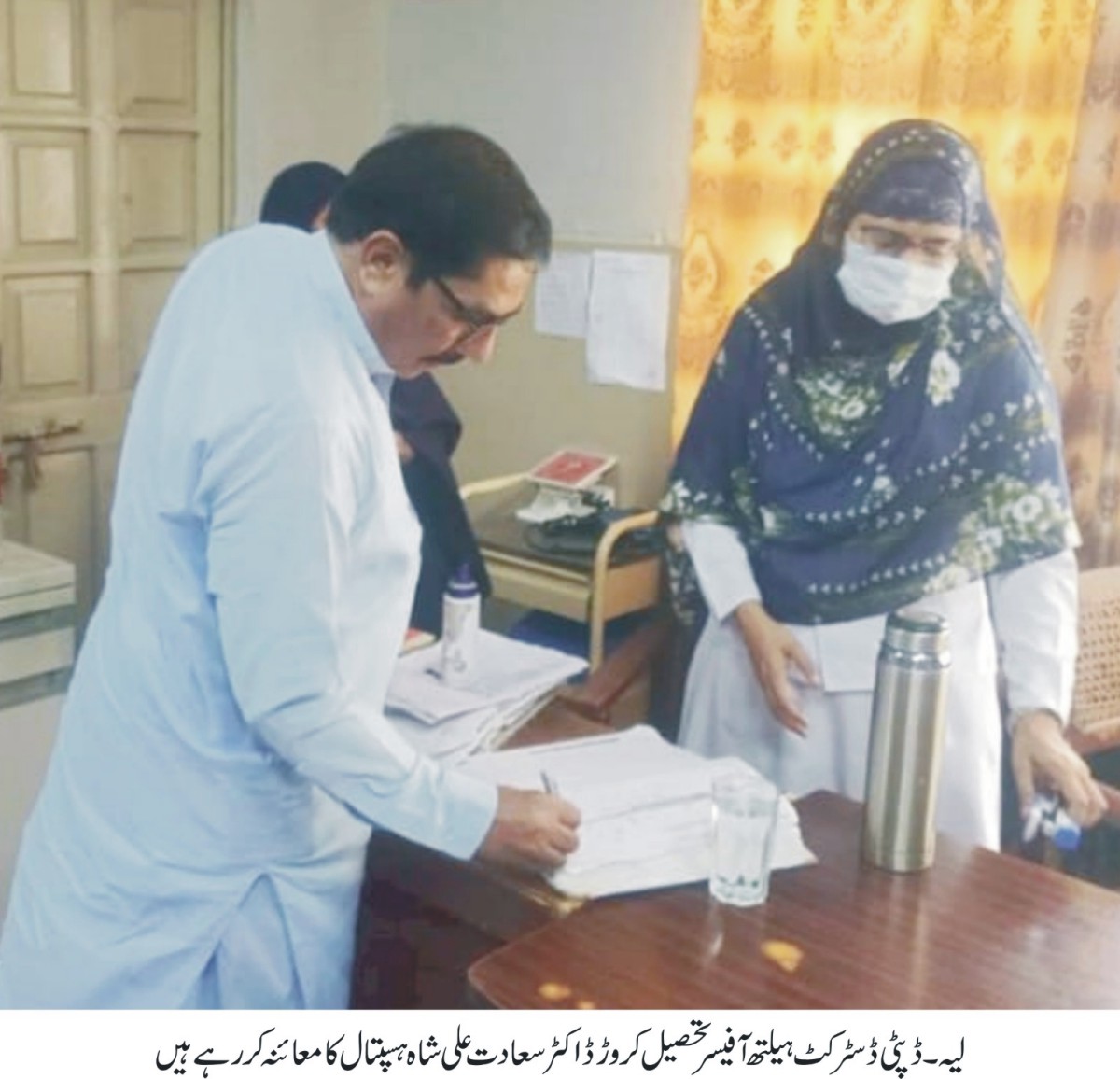 لیہ23 اگست ( لیہ ٹی وی) ڈپٹی کمشنر امیرابیدار کی ہدایات کے مطابق ڈپٹی ڈسٹرکٹ ہیلتھ آفیسر تحصیل کروڑ ڈاکٹر سعادت علی شاہ نے ٹی ایچ کیو ہسپتال کروڑ کا معائنہ کیا ۔انہوں نے او پی ڈی،ایمرجنسی وارڈ،گائنی وارڈ،چلڈرن وارڈ اور فارمیسی میں مریضوں کو دی جانے والی سہولیات کا جائزہ لیا،عملے کی کارکردگی کو سراہا اوراور آنے مریضوں کو مزید بہتر سے بہترطبی سہولیات فراہم کرنے کی ہدایت کی۔